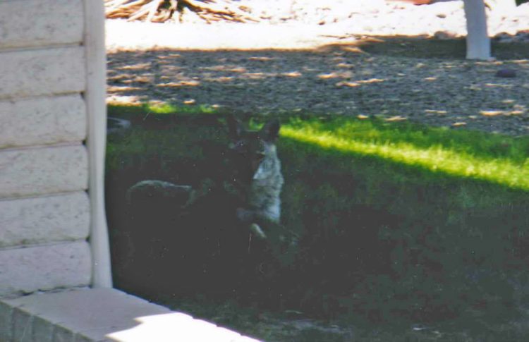 “Mamá coyote espera pacientemente a que Shawn Bordine y José Soto salven a su cachorro”, escribieron en la página de Facebook de Recreation Centers of Sun City West.