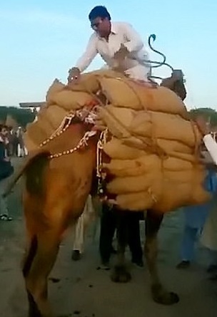 Los defensores de los animales están encendidos con tan terrible concurso. Las criaturas que son obligadas a participar deben soportar que sobre sus jorobas se les amontonen sacos cargados de rocas colosales y pesadas.