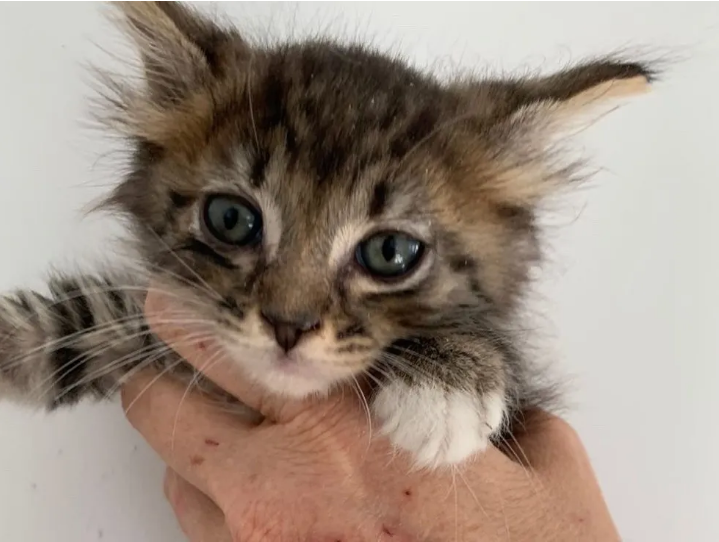 Era un gato pequeñito y solitario que deambulaba en busca de comida, sus maullidos llamaban la atención de los voluntarios que se acercaron para prestarle ayuda.